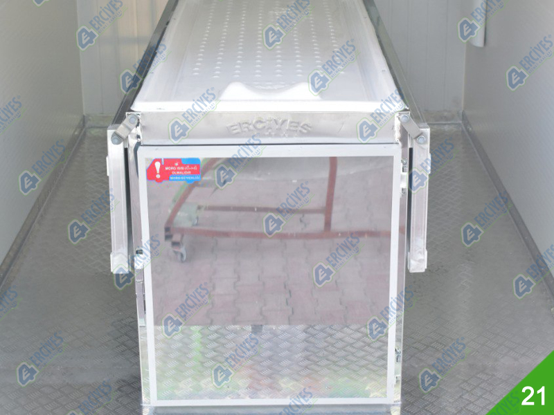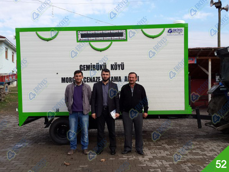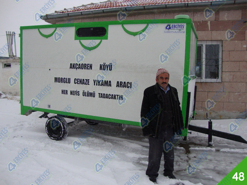 Cenaze Yıkama Römorku tekerlekli olduğu için istediğiniz yere taşıyabilme imkanı sunan ve içerisinde ilgili ekipmanların bulunduğu ve en uygun şekilde yıkama ve kefenleme yapılabilmesi için üretilmiştir. Mobil cenaze yıkama aracı, isterseniz traktörle isterseniz kendi aracınıza bağlayıp istediğiniz yere götürebilirsiniz. Atık su deposu sayesinde bulunduğu ortamı kirletmez. Erciyes Grup cenaze yıkama römorku üretimi ve imalatı yapmaktadır. Dilerseniz Soğutuculu morg ünitesi ile cenaze bekletme de yapılabilir.